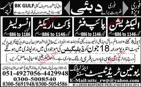 Electricians, Pipe Fitters, Duct Ericators Job Opportunity