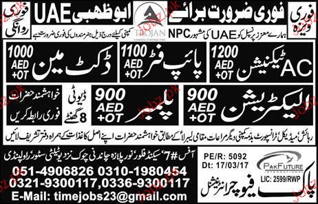 Electricians, Pipe Fitters, Ductman Job Opportunity