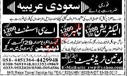 Electricians, Plumbers And AC Assistants Wanted