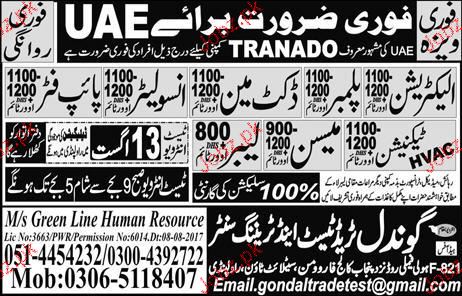 Electricians, Plumbers, Ductman, Labors Job Opportunity