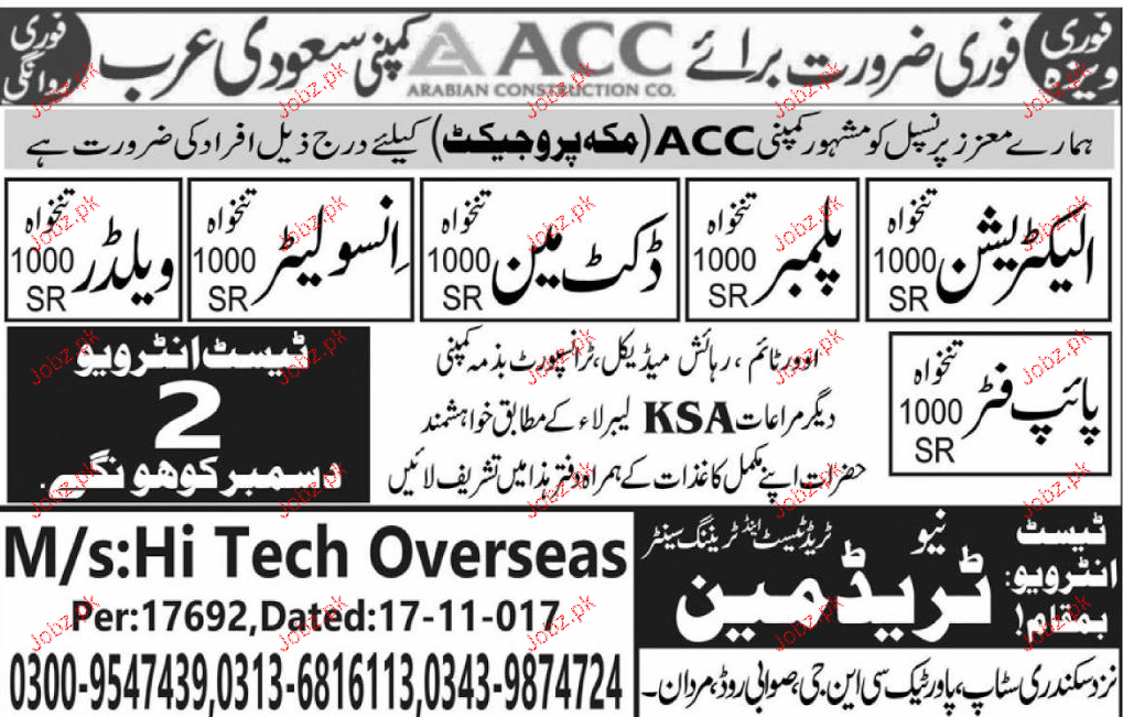 Latest New Trade Man Trade Test & Training Center Industrial Posts Saudi Arabia 2025