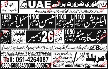 Electricians, Plumbers, Mason, Steel Fixers Job Opportunity