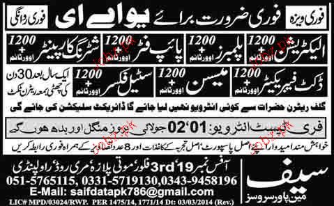 Electricians, Plumbers, Pipe Fitters Job Opportunity