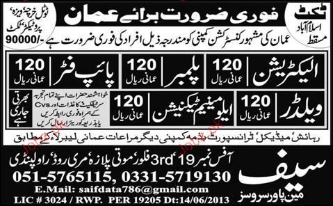 Electricians, Plumbers, Pipe Fitters Job Opportunity