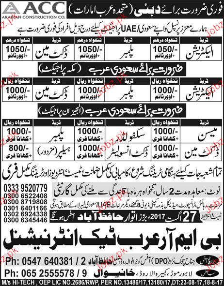 Electricians, Plumbers, Scaffolders Job Opportunity