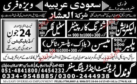 Electricians, Shuttering Carpenters, Mason Block Wanted