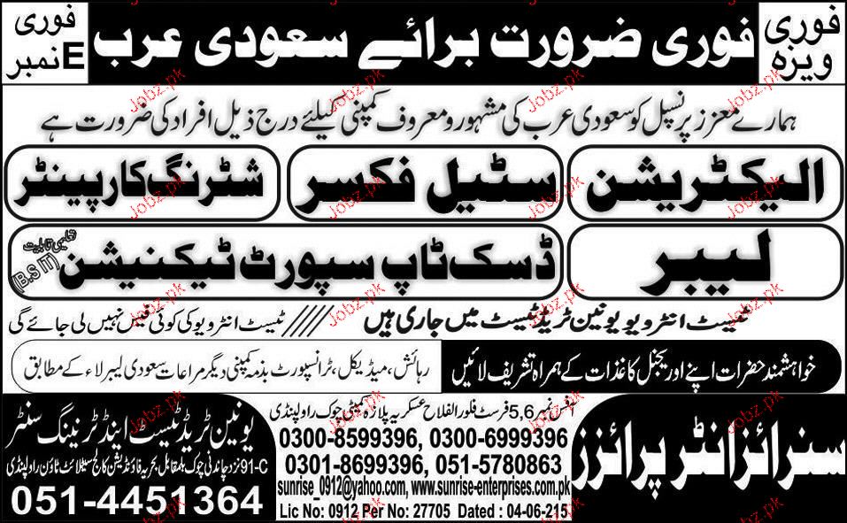 Electricians, Steel Fixers, Shuttering Carpenters Wanted