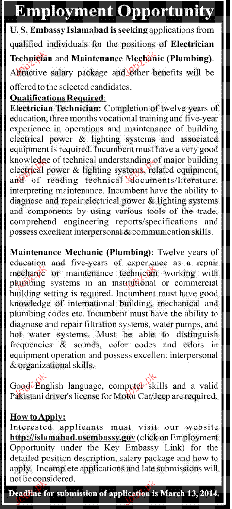 Apply as per details in job advertisement. Login to view further details of how to apply via https://www.jobz.pk online.