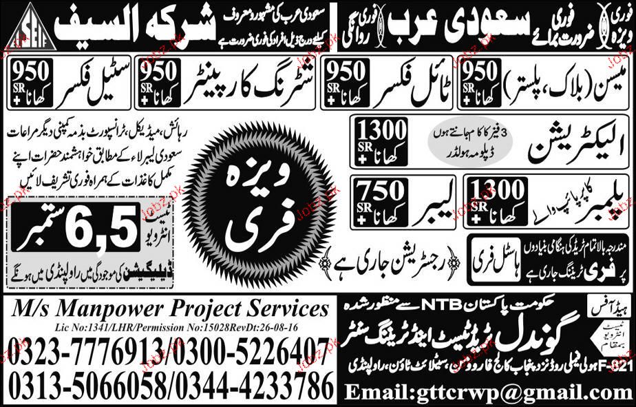 Electricians, Tile Mason, Steel Fixers Job Opportunity