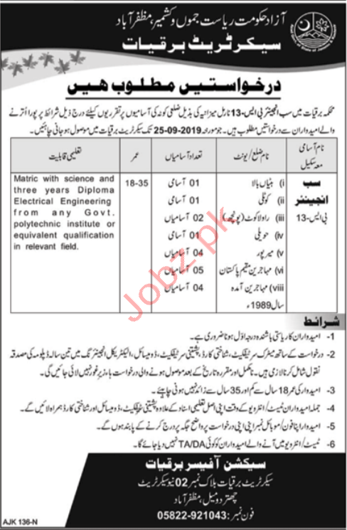 Latest Electricity Department Engineering Posts Muzaffarabad 2025
