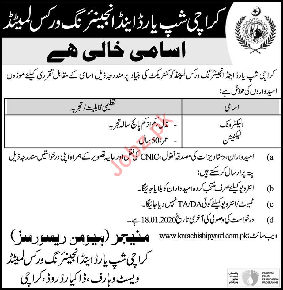 Vacancies in Karachi Shipyard and Engineering Works Limited Advertisement January 2020