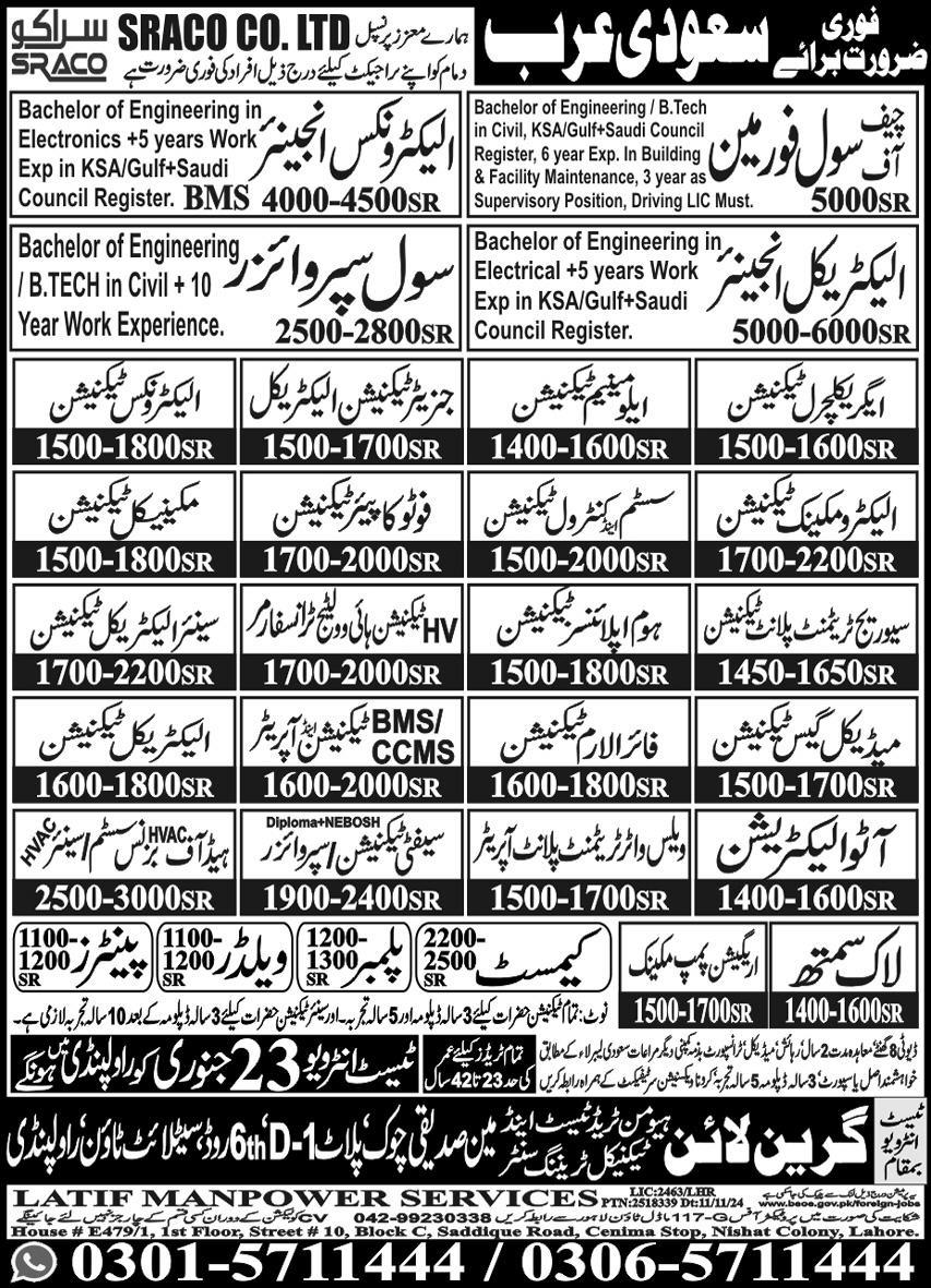 Green Line Human Resource Manpower jobs advertisement dated about 22 January 2025 in daily Express Newspaper invites application for the vacant post of chief of civil foreman, generator technician electrical, hvac technician, safety supervisor, hv technician, fire alarm technician, civil supervisor, electronics technician, mechanical technician, photo copier technician, home appliances technician, sewerage treatment plant technician, aluminum technician, electrical engineer, ccms technician, auto electrician, mbs technician, electronics engineer, head of business system, electro mechanic technician, medical gas technician, irrigation pump mechanic, lock smith, safety technician, electrical technician, bms operator, civil foreman, agricultural technician, system control technician, ccms operator and water treatment plant operator in Dammam, al khobar Saudi Arabia. Intermediate, B.E, Bachelor, DAE and Matric etc. educational qualification will be preferred.