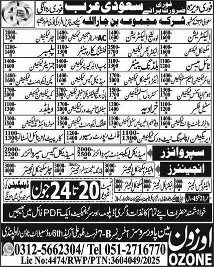 Ozone Manpower invites applications for job positions advertised in daily Express dated 18 June 2025 for following vacancies in Riyadh, dammam Saudi Arabia.
