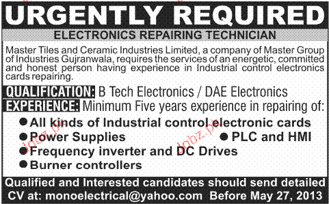 Electronics Repairing Technicians Job Opportunity