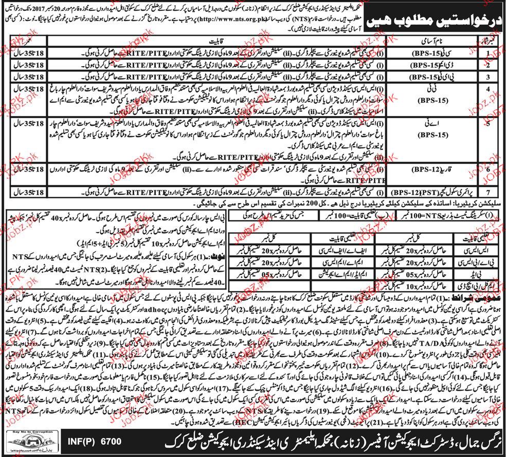 Latest Elementary and Secondary Education Department ESED Teaching Posts Karak 2025