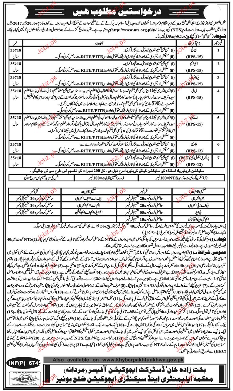 Latest Elementary and Secondary Education Department ESED Teaching Posts Buner 2025