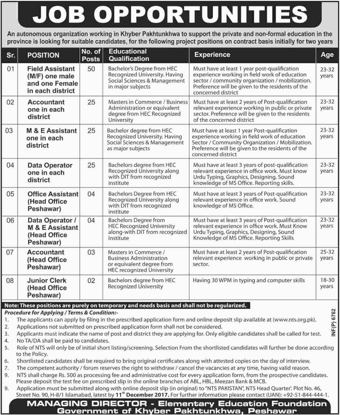 Latest Elementary Education Foundation NGO Posts Peshawar 2025