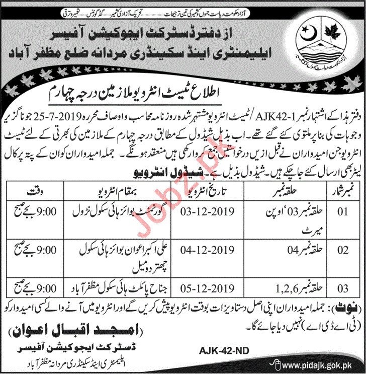 Elementary & Secondary Education Department AJK Jobs 2019