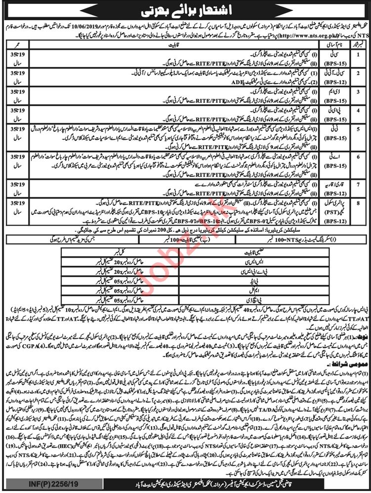 Elementary & Secondary Education Jobs For Abbottabad via NTS