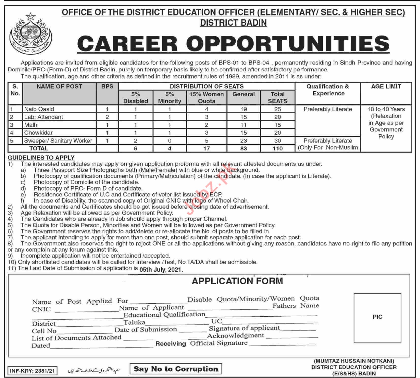 District Education Office Jobs & Application Form 2021 Pakistan Video