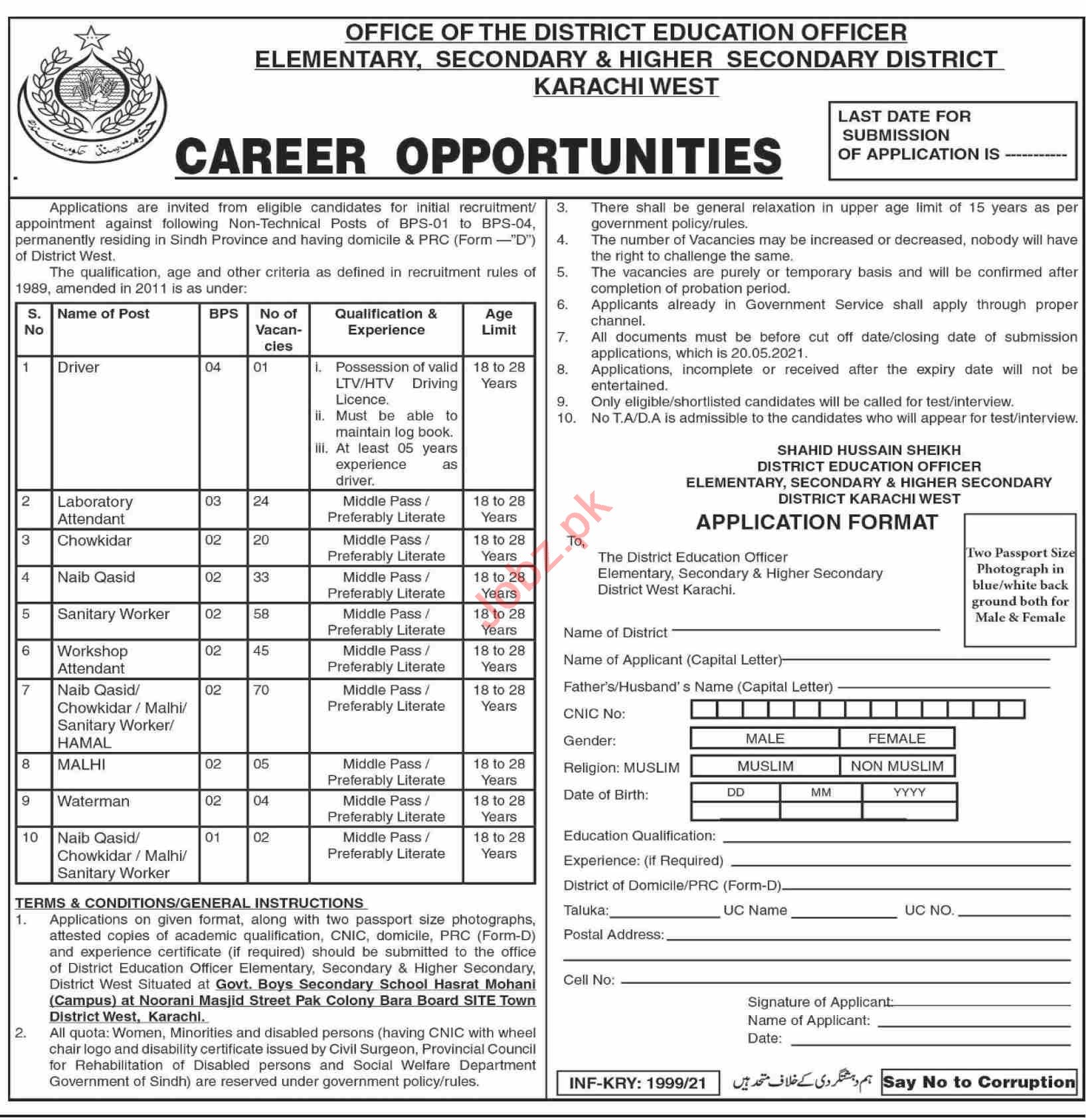 Elementary Secondary & Higher Secondary Karachi West Jobs