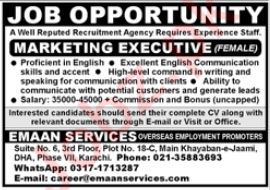Vacant posts including marketing executive are announced in Emaan Services Overseas Employment Promoters Karachi, karachi Sindh Pakistan as per 25 February 2024 advertisement in daily Jang Newspaper. Master and Bachelor etc. educational qualification will be preferred.