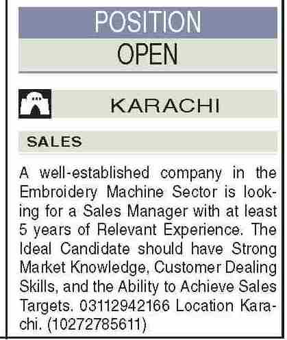 Garments Factory invites applications for job positions advertised in daily Dawn dated 8 October 2025 for following vacancies in Karachi, karachi Sindh Pakistan.