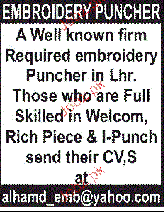 Embroidery Punchers Job Opportunity