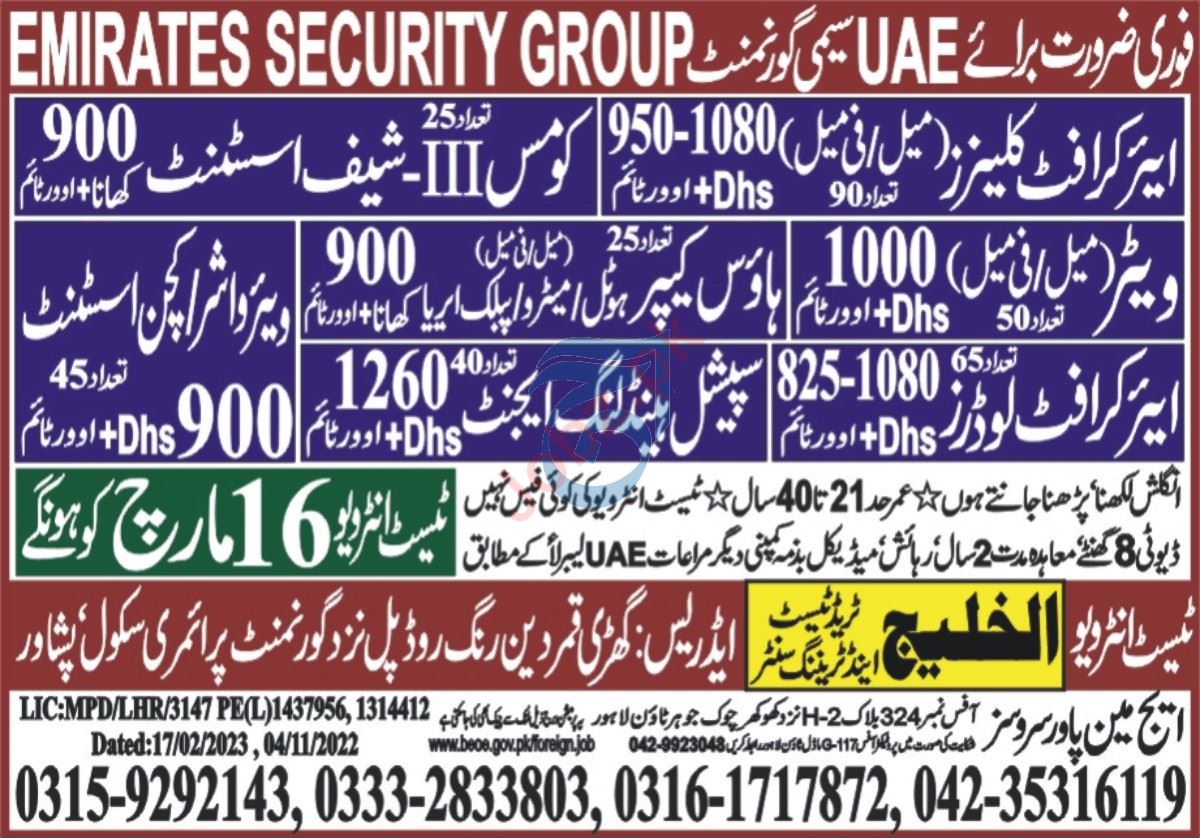 Edge Manpower Services UAE, uae UAE invites applications from eligible candidates for the post of Female Waiter, Waiter, Assistant Chef, Kitchen Assistant, Aircraft Loader, Aircraft Cleaner, Special Handling Agent, House Keeper, Commiss and Ware Washer as per advertisement of March 12, 2023 published in daily Express Newspaper. Candidates with Intermediate, DAE, Matric, Middle and Bachelor etc. educational background will be preferred.