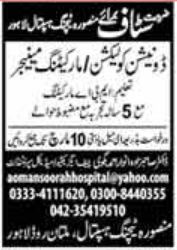 Vacant posts including marketing manager and donation collection manager are announced in Mansoora Teaching Hospital Lahore, lahore Punjab Pakistan as per 7 March 2022 advertisement in daily Dunya Newspaper. Educational qualifications required MBA etc.