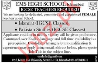 Vacancies in EMS High School Islamabad Advertisement June 2019