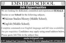Latest EMS High School Islamabad Teaching Posts Islamabad 2025