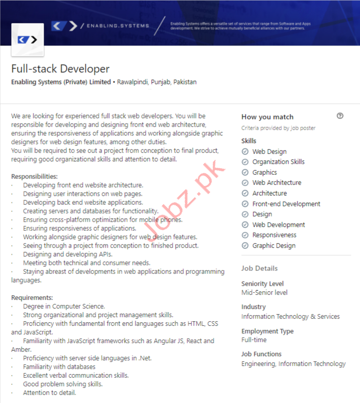 Latest Enabling Systems Private Limited IT Posts Rawalpindi 2025