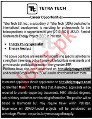 Vacancies in Tetra Tech Company Ltd Advertisement March 2019