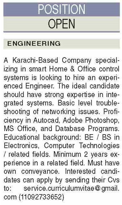 Vacant posts including engineer are announced in Private Company Karachi, karachi Sindh Pakistan as per 25 September 2024 advertisement in daily Dawn Newspaper. Candidates with B.E and Bachelor etc. educational background will be preferred.