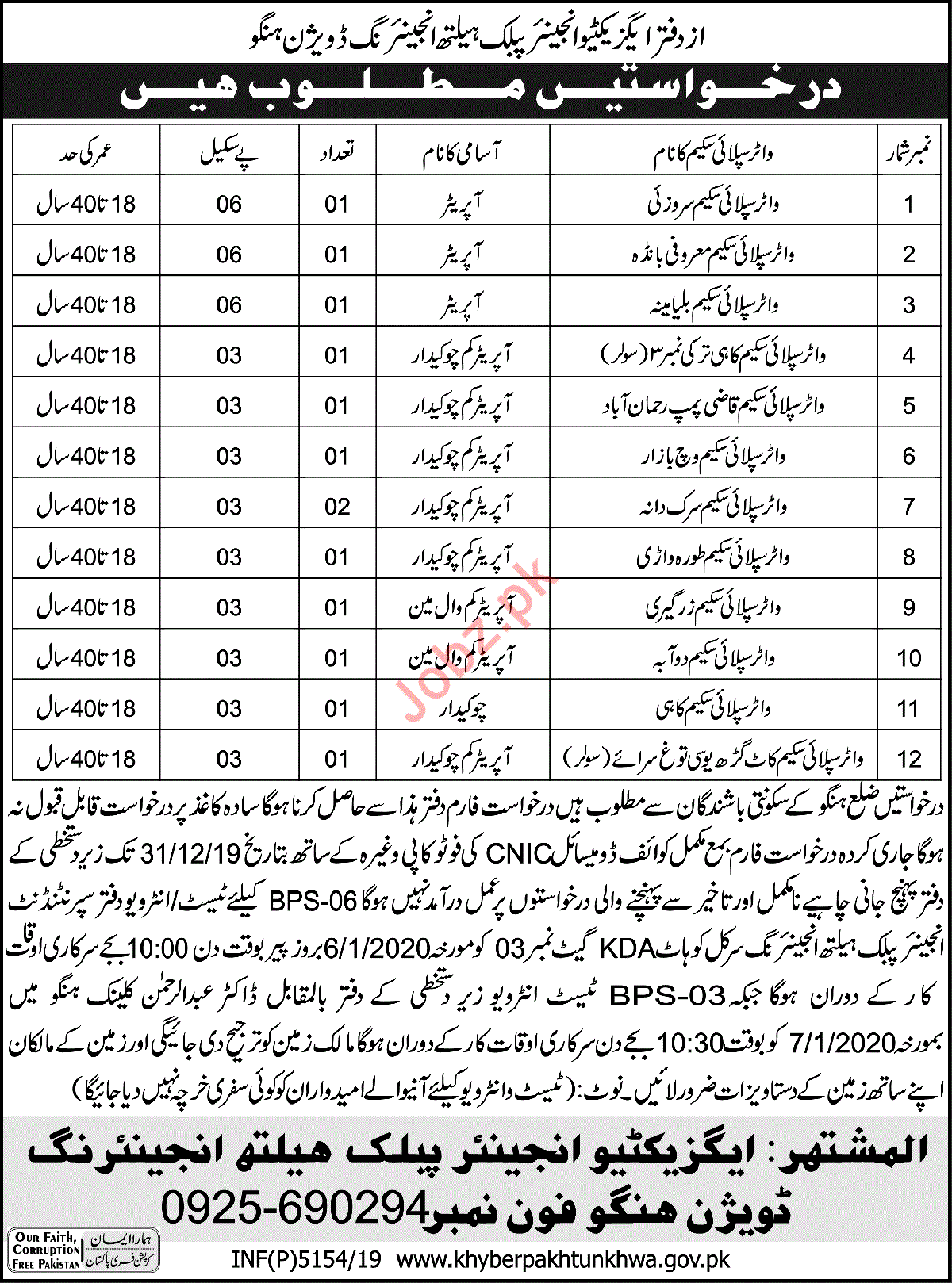 Latest Public Health Engineering Department Labor Posts Hangu 2025