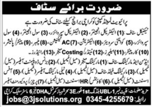 Private Limited Company Karachi, karachi Sindh Pakistan invites applications from eligible candidates for the post of electrical supervisor, business development officer, ac technician, purchaser, polisher, civil supervisor, plumber, painter, rider, office assistant, carpenter, civil engineer, costing manager, electrician, hr assistant, electrical engineer, tender manager, procurement officer, marketing field staff, female telemarketing officer, helper, marketing manager, quantity surveyor and accounts assistant as per advertisement of April 27, 2022 published in daily Jang Newspaper. Persons with Master, Bachelor, Matric and Intermediate etc. education can apply.