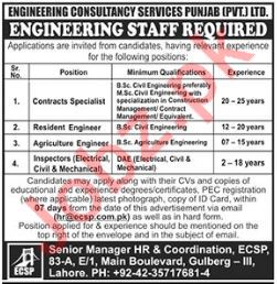 Latest Engineering Consultancy Services Punjab ECSP Engineering Posts Lahore 2025