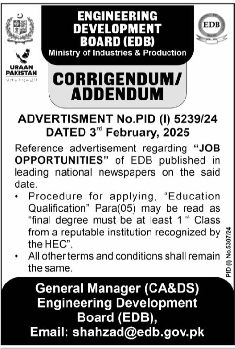 Vacancies in Ministry of Industries and Production Advertisement February 2025