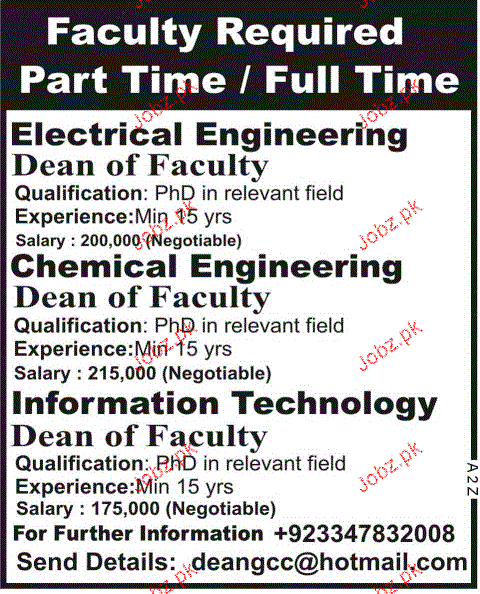 Apply as per details in job advertisement. Login to view further details of how to apply via https://www.jobz.pk online.