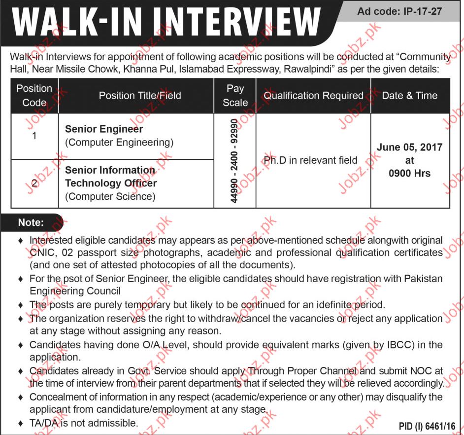 Apply as per details in job advertisement. Login to view further details of how to apply via https://www.jobz.pk online.