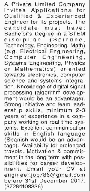 Latest Engineering Company Engineering Posts Islamabad 2025