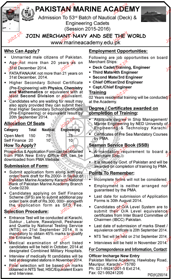Apply as per details in job advertisement. Login to view further details of how to apply via https://www.jobz.pk online.