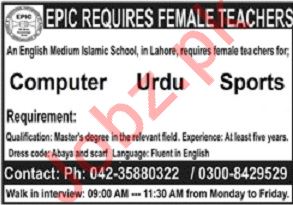 Latest English Medium Islamic School EPIC Teaching Posts Lahore 2025