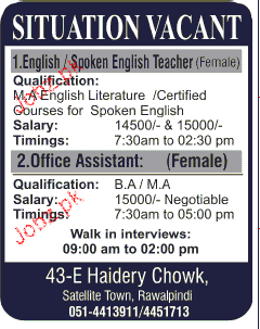 Latest Private Company Teaching Posts Rawalpindi 2025