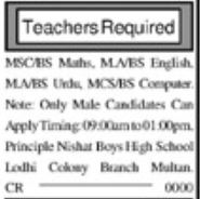Nishat High School latest Classifieds Teaching jobs and others can be applied till February 29, 2024 or as per closing date in newspaper ad. Read complete ad online to know how to apply on latest Nishat High School job opportunities. Learn today extra skills including Teaching/Lecturing, Urdu, Computer Science Tutoring, English Teaching and Mathematics to get these Nishat High School jobs.