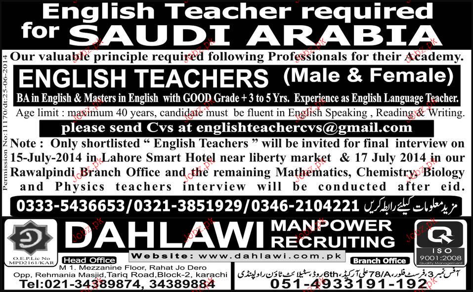 Latest Private Company Teaching Posts Saudi Arabia 2025