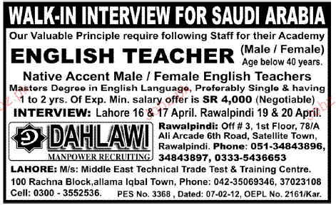 Latest Private Company Teaching Posts Saudi Arabia 2025