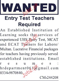 Apply as per details in job advertisement. Login to view further details of how to apply via https://www.jobz.pk online.