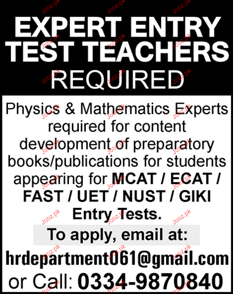 Apply as per details in job advertisement. Login to view further details of how to apply via https://www.jobz.pk online.